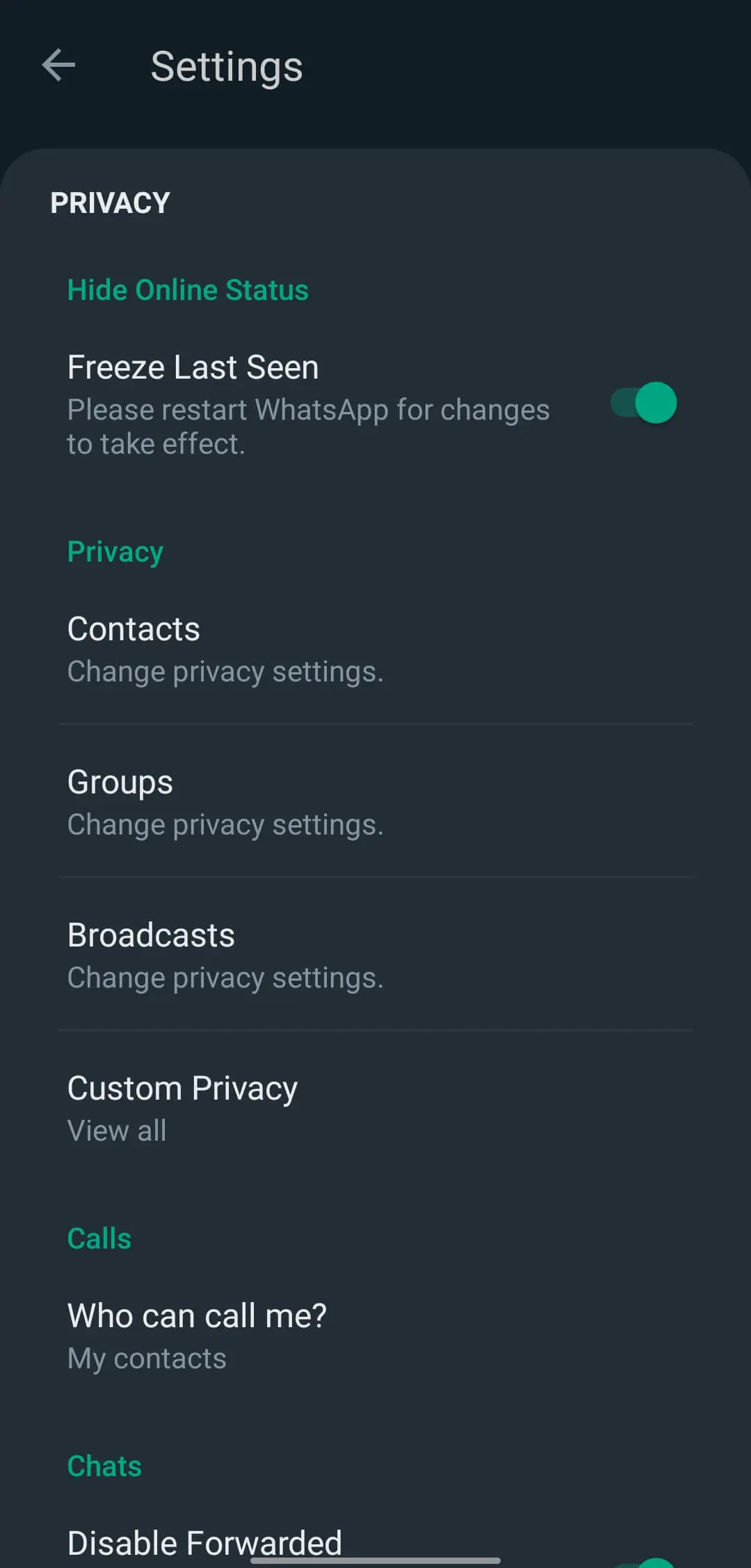Users have full control over their privacy settings, allowing them to manage who can contact them and who can view their profile picture. Additionally, there’s an option to freeze the “Last Seen” feature, ensuring that your last seen timestamp remains constant regardless of how frequently you access the app.
